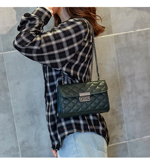 Красива сумочка зі стьобаної м'якої екошкіри. Закривається на металеву застібку. Всередині одна пришивна й одна потайна кишеня на блискавці. Плечовий ремінець у вигляді ланцюжка. Виріб має одне просторе відділення з підкладкою з екошкіри. Сумка середньої жорсткості, тримає форму.